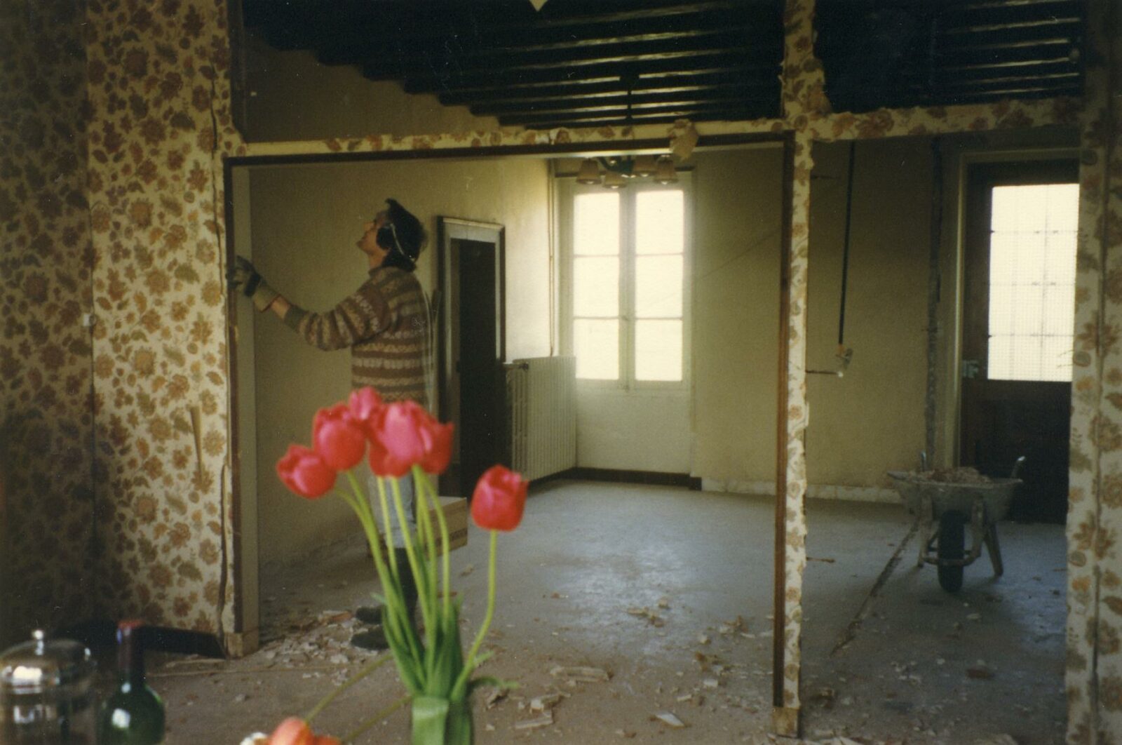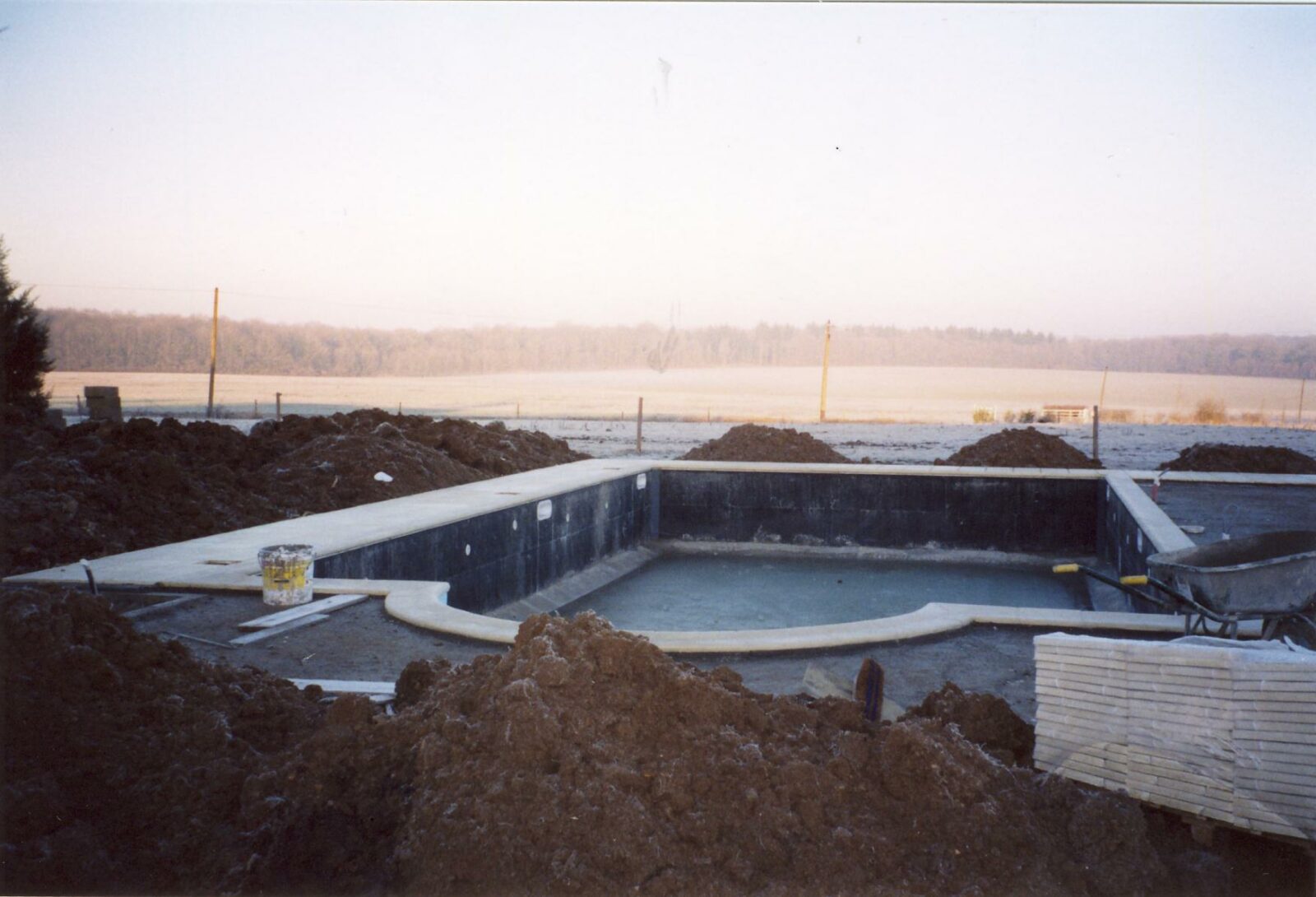 Travaux de terrassement et fondations lors de la rénovation de l'hôtel Le Fleuray proche d'Amboise en 1991.